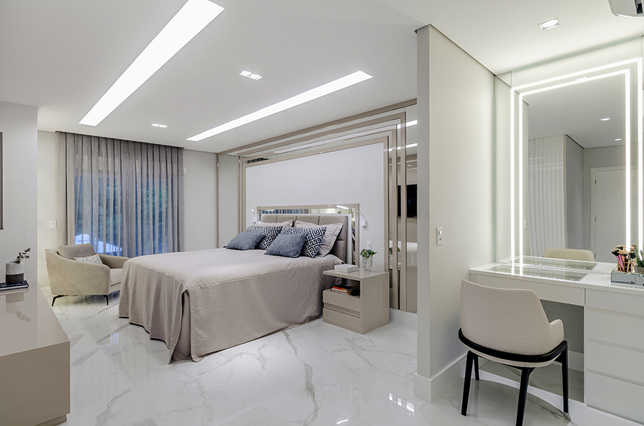 Esse tipo de sistema permite criar soluções modernas para interiores, como tetos rebaixados, divisórias e elementos decorativos.
